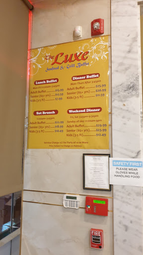 THE BEST EVER As a gift of appreciation for letting me stay at their house for a weekend before moving to NH, I took my friends out to The Luxe Buffet. This visit was my first visit and is already in my list for every time I visit California. The amount of and variety of food is amazing. You can have your basics of pizza, chicken, sausage and or go extravagant with stuffed lobster, seafood galore, etc. For dessert, you have choice of many pastries, fruit, chocolate fountain, and about nine flavours of gelato ice cream. The staff also is extremely friendly and professional. I never waited for a refill on my soda, which is important to me. The staff is very aware of your needs, including taking my phone to charge it when I needed. Plus, all the women, and Id say even the men, were gorgeous. WELL WORTH THE $30 Per Meal, which includes the tips.