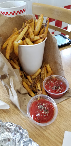 Five Guys restaurants are always hit or miss depending on which location you go to, because they are actually grilling the burgers for each order. This location is just okay. The burgers are a little pricier than your usual fast food chain, but the quality of ingredients justifies it. Free peanuts are always a plus, too.