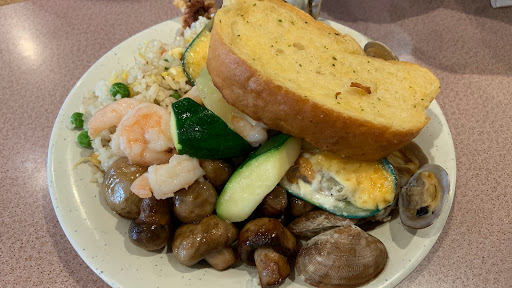 Waiter was attentive. Food is okay but can be improved. The hot food was cold. Steaks tips were too hard to chew. The teppanyaki was good. It is your regular buffet. Ice cream and the almond cookies were very good.