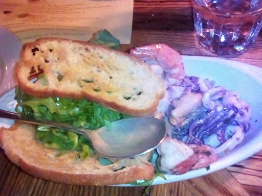 While searching for another restaurant, I mistakenly walked into this restaurant. It was packed, of course, it was dinner time and it was a Saturday night. This restaurant is really cute in its style, kind of funky, eclectic, rustic, and european-ish. Despite the separation of the main seating area to the bar area, this restaurant had a very open feeling. Being that the restaurant was packed and I didnt have a reservation and it was just me, I wound up sitting at the end of the bar. The hostesses were kind enough to put a chair at the very end of the bar and let me squeeze in. The menu was simple, not a whole lot of options to it. I had been wanting a good hearty bowl of Clam Chowder Soup, but because I mistakenly walked into this restaurant, I didnt have the option to get Clam Chowder, as this restaurant didnt serve Clam Chowder, I ended up ordering the soup of the day, which was a "Beef Vegetable" (I cant remember the exact name of the soup), but it turned out to be really good, very hearty, healthy and filling. I also ordered a side of grilled vegetables which ended up being leftovers the next day! It had become pretty cold that evening, so with my meal, I ordered a cup of tea. But instead of just giving me a cup of tea with a little metal teapot, I was given a regular pot of tea. I thought that was decent of them, and from what I recall it really wasnt that expensive. They had some pretty decent tea flavors. The Bartender who waited on me was really nice and attentive, although the restaurant was packed and it was a busy night, he did a great job serving his customers. I walked about 4 blocks to get to this area, in search of the other restaurant, but I believe parking was all street parking and it wasnt very difficult to find spaces. From what I could tell from how crowded the place was, was that it was a very popular place. Seeing that there wasnt any open seating was pretty comforting, it gave me the extra assurance of their quality of food and service.