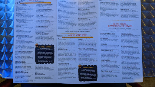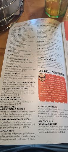 I enjoyed the OMG burger. Burger patty itself was best Ive tasted in the desert, it was so flavorful. Top notch, unfortunately the toasted sesame seed bun fell apart, so I chose not to eat it. The burger price is high for the atmosphere ($14.95) and burgers dont include a side which is probably why their prices arent listed on their website menu. You can order fries for $6 but they charge extra for dipping sauce too. The booth was comfortable but the dining room chairs were super small as if for children and entire room smelled like fried oil. Reminded me of the smell that you cant remove. I would recommend if you want a tasty burger, just be aware that the prices are a lot considering the atmosphere. Reminded me a little bit of a video poker bar in Vegas without the video poker.. Also the menu is huge even though most burgers have similar toppings. Service was good.