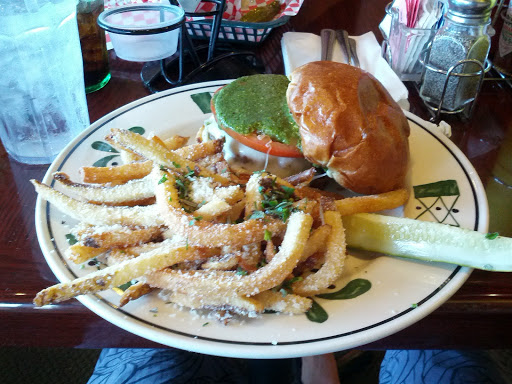 Usually the service is spot on. Little outta sorts today. But the food was great as usual and staff was very friendly as usual. Poncho Villa burger is awesome and garlic fries are a must. Busy at peak lunch times. Be patient in the parking lot - its a mess of a parking lot.