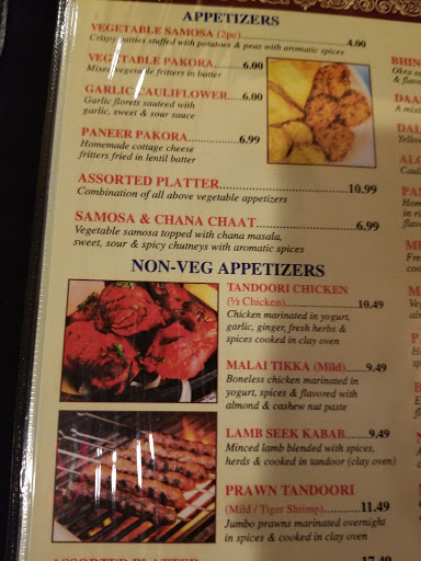 I was very disappointed with quality of food offered during a Friday dinner and then at the lunch buffet on a Saturday. I am a vegetarian and an Indian-American and love Indian food. Mattar-paneer I ordered at Friday dinner was tasteless, soggy wet and full of garlic. Naan was too salty. The next day buffet lunch came with three veggie dishes, all tasteless and soaked in garlic. Take-out raita was too salty. The rave reviews I see must have come from meat-eaters and non-Indians as I saw some of those guys gobbling chicken and meat dishes. This restaurant needs to improve quality of veggie dishes with Indian vegetarians in mind. The restroom was filthy. The waitress was not very pleasant, nor cordial. I didnt find the cost of the meals reasonable either for the poor quality. I wont be coming back to this restaurant again.