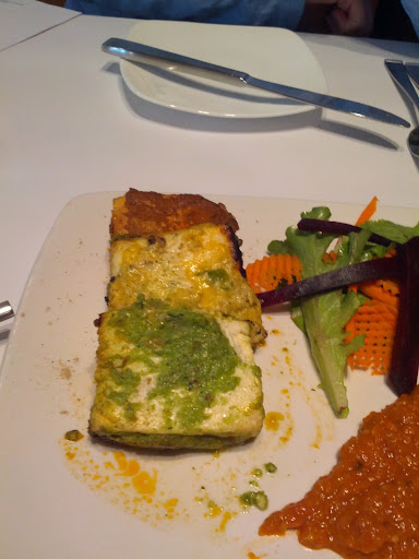 Having read a number of reviews on Google that nearly put me off, the lazy side of me decided to give Junnoon a go as it was pretty much the closest place to my hotel. Other criticisms are that bookings are not dealt with well? Im afraid I cant comment there, I was a walk in. The food is not Indian? Well, if your looking for a Chicken Madras with Pilau rice, then this is not the place for you. That said however... The food is a play on Indian foods, which are both interesting and fun. The service was perfectly timed (not good for a speedy lunch maybe, but perfect for a romantic night out, or conversation over dinner). Actually the service was superb, the level of knowledge about the food and wine were great, and enhanced the experience beautifully. We went for the Prix Fixe menu, paired with wine. The pairings on a whole were great, and the food well presented and prepared. The service from our server was out of this world. I could only recommend Junnoon to all.