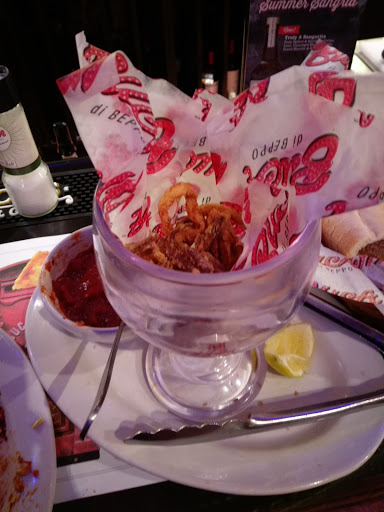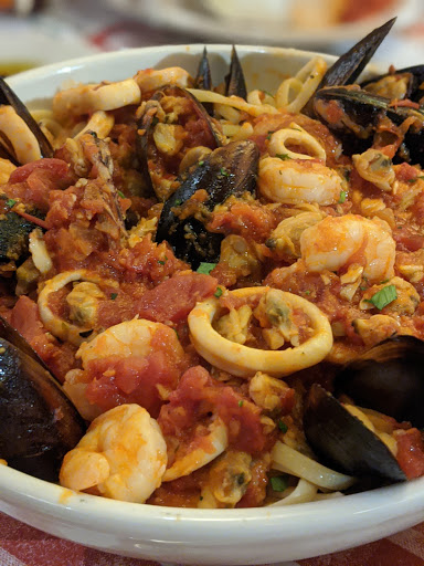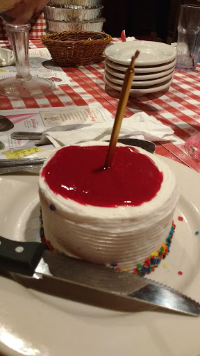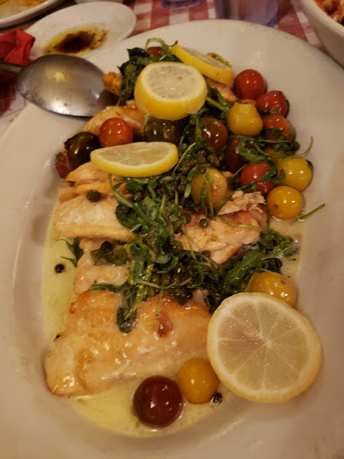 Its a chain, which I didnt realize until going there. Not bad, considering. They try hard to replicate the feel of an old school red sauce joint, and while they dont entirely succeed, it does have more personality than most chains. You enter through the kitchen (not sure if thats intentional/ standard or just a quirk of this one) and into a series of medium dining rooms. The speakers for the background music in our room were messed up - the volume had two choices, loud or off, which apparently theyve never bothered to fix. I do like the fact that breaking the dining spaces up into smaller rooms gives more of a sense of privacy and allows less sound to carry from table to table. The food is decent, and affordable considering the family-style portions. For our table of 7 we went with three apps and three small entrees and it was just about the right amount of food - so the 3-5 each entrée serves is really only true if you also order apps. If not, its probably more like 2 for a small, 3-4 for a large. Definitely not my favorite place, but for a large group, Ill probably go back again.