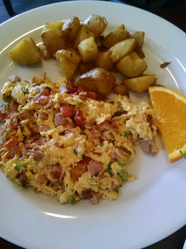 Solid brunch - had pancakes with eggs and habanero sausage - great cranberry-coconut scone. Pretty standard fare, sub-par service, nice location. Wish there was some air conditioning. Very reasonable prices.