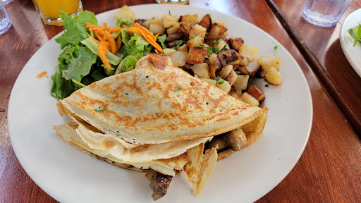 Casual cafe that is a small local chain (I have been to the other locations I know of in SF and Berkeley as well). A wide variety of savory and sweet crepes, salads, and breakfast fare are offered. Beverages include small bar/wine options as well as coffee/espresso drinks. This is an order at counter place that will then bring food to your table. I have always had good meals here and portions tend to be on the slightly late size. Depending on when you go, it can be noisy/crowded, but I have never waited long and can still carry on conversation at the tables, which are spaced fairly close together.