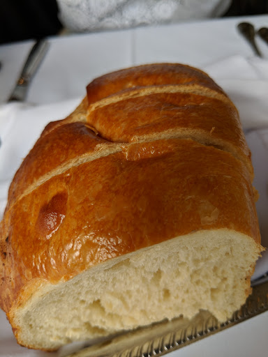 This place is an institution in Palo Alto i.e. It was here before the whole Silicon Valley took off. I came here again after a few years away. I was happy that while their menu offerings really havent changed the food was still great (they use polenta instead with some of the pairing) the entree to get is their breaded calamari. They seriously know how to make this nice and soft and delicious. I had also the poached salmon which could have been cooked better but the spinach and sauce were the perfect complement. We finished off with the flan which isnt a looker but sure taste good and hits the spot. Did I mention they give you a nice half a loaf of soft warm bread to start. All in all good.- Its not cheap but its Palo Alto