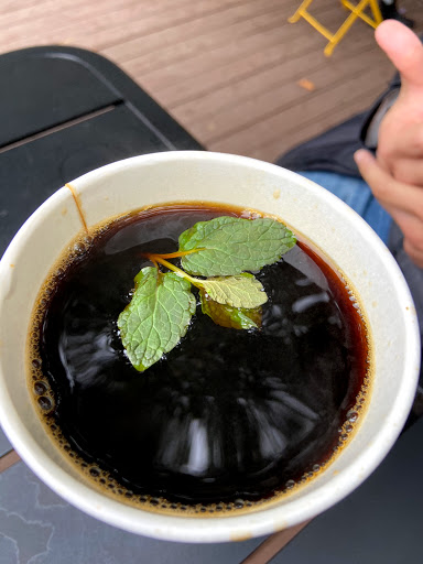 Ive had single cup brew before and it was fine. The one I had here was Philharmonic. I took it black with mint (I dont normally drink straight black, but I wanted to experience the full flavor). It was pretty good black, though I think the mint was a little strong. Its awesome that they use mint off a plant right on the counter. I could definitely support this place (business looks green and hip), but I might need to go a few times to find the perfect coffee for me.