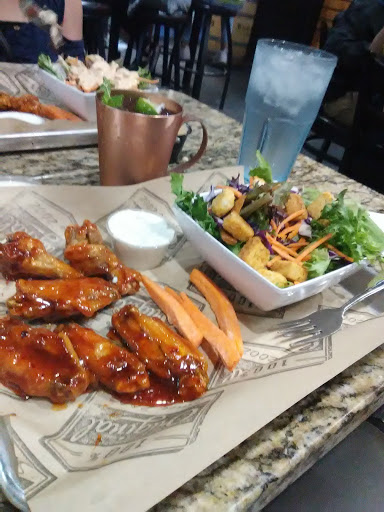 I ad a 20 minute wait meanwhile plenty of ables were open. I received horrible service here. Our food was served 5 minutes apart from each meal. It took the 25 minutes to do a kids cheese burger. While at the same time the table next to us ordered andhad their 20 dollar overpriced burger before us. When I confronted the waiter about they became hostile. I had to chase them down for utensils and refills. Waitresses spent most of the time in a group just hanging out in the bar. Dont eat in. Just order your wings to go.