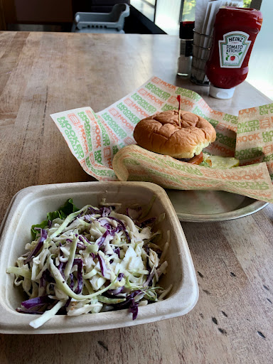 Similar to a habit burger. Fast and easy. Great customer service where they will bring you your meal at the table and actually get you refills of your drink.
