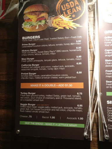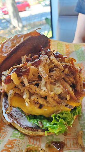 Fresh food, clean facilities and very friendly staff make for a wonderful dining experience. All of the burgers (and really all of their entrees) are large and stuffed with veggies, cheese and excellent condiments. Their Trio platter of French fries, sweet potato fries, and onion rings is a favorite as are their various shakes. Prices are on the higher end of fast casual dining, but the quality ingredients and large portions definitely make the prices understandable. Good family environment, and good selection of beers.