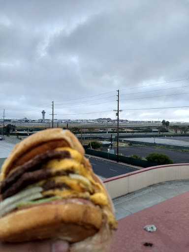 Thats what a hamburger (cheeseburger, or double double, etc.) is all about. This is a more vintage in n out where its purely a drive through. There are some tables outside but no indoor dining area. The lines can get quite long during their busy times so just be careful especially where people are heading east on Foothill and it starts curving right there.