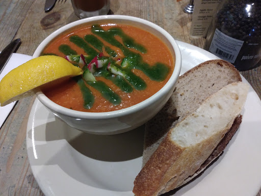 Chicken cobb salad is solid. Gazpacho is great. Avocado toast also delicious. Prices are a little steep, but food is of appropriately high quality. Service can be slow at times, but servers are always very friendly.