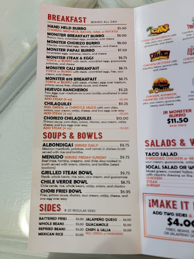 I ordered the monster burrito for breakfast and nothing was monster about it. bought a regular one before and it was bigger. $10 for a small burrito just totally not worth coming back.