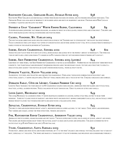 Best natural driven wine list north of rhe Golden Gate. Great service, amazing comfortable vibe and the food is second to none. Best restaurant in petaluma by far!!