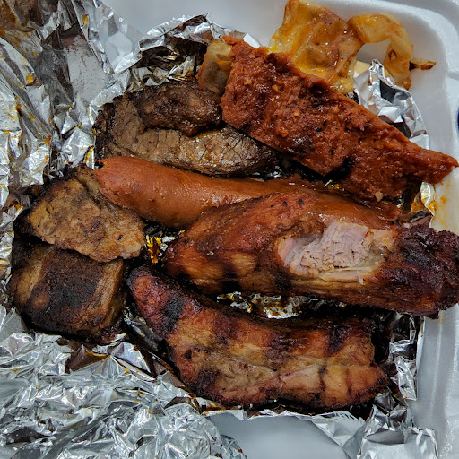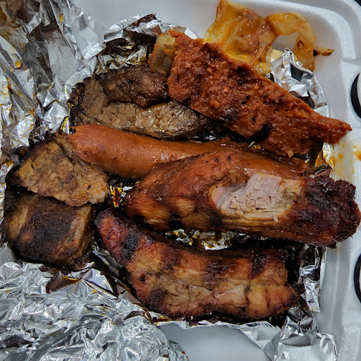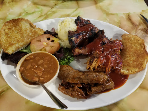 Great Ribs! Combo platter is awesome! Includes beef, pork, & chicken, all bar b q style, sides include mashed potatoes & macaroni n cheese.