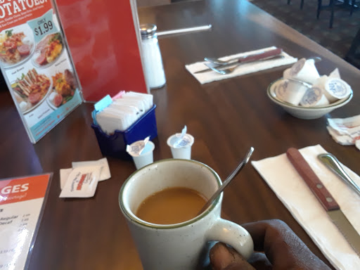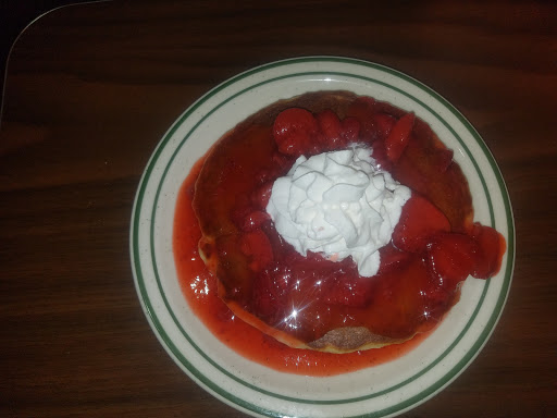 Went on the 26th got the steak eggs hash browns and pancakes the steak was burnt the hash brown was greasy and the pancakes were cold next time I spend my money at Dennys Ive eaten there in the morning excellent food this time it was 7:30 at night lousy do not eat there at night I would rather give my money to Dennys I think and what really gets me is when you tell them about the lousy service they just smile and say oh Im sorry instead of correcting it Bad Business