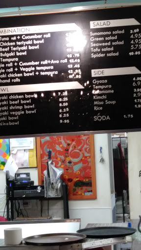 I have been there twice. The first trip the chicken teriyaki bowl was good but the california roll was tasteless. On the 2nd trip today, the teriyaki bowl was not as good as the first time and I took another chance with the california roll that continues to be tasteless. Today I observed the cooks handling kitchen equipment, including cleaning and not washing their hands before preparing food with their bare hands. I also observed them use a food storage bin to flatten food while it was on the grill. I observed the guy making sushi rolls not washing his hands as he moved from throughout the kitchen and sushi prep station. Two strikes, no need for a third. I am never going back. I also filed a online complaint today with county health services reporting my observations of unsanitary practices.