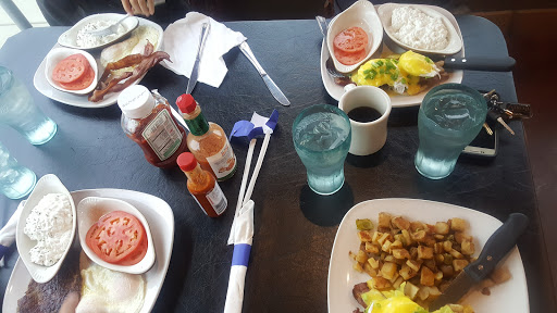 Food and service here are great! You can eat indoors or they have a great patio with a nice view of the ocean. By the way, they serve breakfast all day! We will definitely return the next time we are in town!