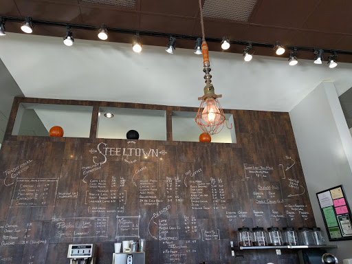 Steeltown is a cool little coffee shop in downtown Pittsburg inside the lobby of a bank. There are a few tables to enjoy your coffee and a handful of snacks, but the main attraction are the beverages. They brew a good, strong coffee and make really nice specialty drinks. I had a spiced mocha (similar to a Mexican hot chocolate) and a latte. Both were well made. Great spot to stop in Pittsburg.