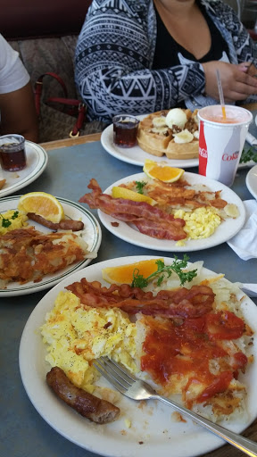 I judge food places based on breakfast. Come on .....how can you mess up eggs? Food is ok here . Great Customer service. My omlet comes out a lil brown....over cooked in my book. Omlets should be yellow fluffy and completely scrambled. They tend to come with white spots. Tried other food , its ok. Huge menu. Next to freeway.
