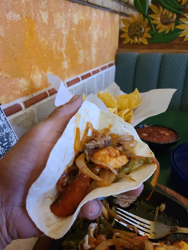 $1.50 happy hour tacos in the Cantina, cant go wrong with that. My daughter had the seafood burrito and it was excellent also. Service is a little slow but I still go back several times a month.