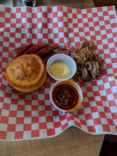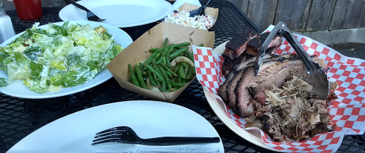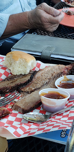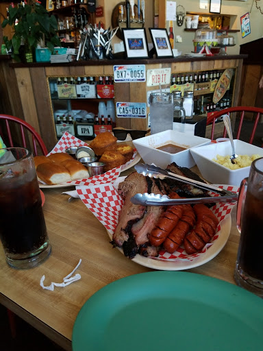 I have mixed feelings after my first visit here. They may have had an off day as the joint was jumping at five oclock on a weekday. Took about 20 minutes to get my order to go. Who goes out to eat at 5pm on a weekday? Anyway... ordered to go; 2 meat plate w/2 sides (baby back ribs, brisket, cole slaw, and corn bread). This was a lot of food and half the brisket went into the fridge for maybe a sandwich tomorrow. When I got home I took a quick sample of the brisket. I found it a little too fatty and a bit underdone for me. The ribs also looked a bit the same. No problem, as I planned to reheat it a bit later and I just left the meat in the oven a bit longer (about 25 minutes at 350). After a visit with the oven, both the ribs and the brisket were great. Ribs were fall off the bone tender, and the brisket was much more appetizing with a little more cooking time. Very tasty, but brings me to the conclusion that if I was served this there, I would have either had to send it back (something I rarely ever do), or just be pretty unhappy with my food. The slaw and corn bread were OK, but nothing special. I will try the beans and/or potato salad next time. On exiting the parking lot I saw a sign which may explain why this place was jumping on a weekday afternoon... "$2 Taco Tuesday". Nothing like cheap to get them rolling through the doors like oranges. I will definitely try this place again (just not on a Tuesday), and ask for edge cuts if possible. Update: Since my first visit here I am upping the place to 5 stars. Loving the baby back plate so much I order it almost every visit. The sides have been improved as well. Very tasty place