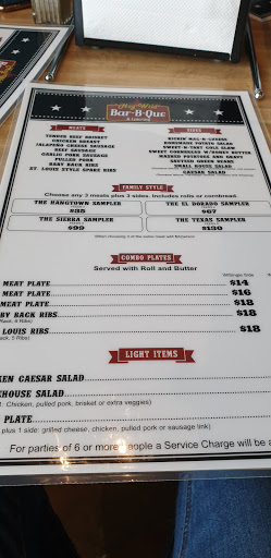 We were there for lunch on a Sunday and it was busy, but they found a table for us and service was was very good. The restaurant is austere and businesslike but pleasant enough. I ordered St. Louis ribs. For me they were a little sweeter and not as spicy as I might like and a bit dry but pretty darn good. The chicken was amazing - tender and moist with a big deep-smoked flavor. Their prices are comparable to similar BBQ restaurants I’ve visited in the area. Recommended.