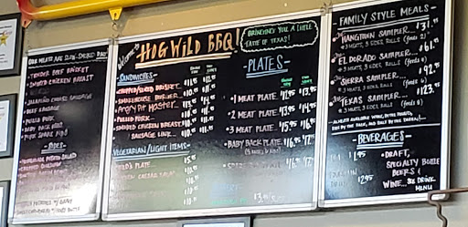 We rolled into Hog Wild BBQ a few minutes before closing on a 3 day holiday weekend. The management and waitress let us seat our group of about 15 people. The food was generally good although my brisket was rather dry as it was at the end of the day. Everyone else hit the jackpot with the various scrumptious offerings. Even though we kept them hours later than their closing, they cheerfully thanked us and invited us to come back. We invited them on our next raft trip... if they bring some pulled pork. This is now my favorite place to eat in Placerville. Be sure to check it out.