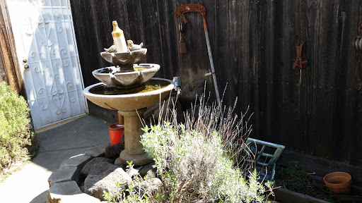 It was a beaut of a day. We decided to go to downtown Placerville for lunch. Placerville has lots of great restaurants now. We parked in the convenient garage. The streets were filled with people. We saw Old Town Grill and entered. You order at the front. The grill was being worked by a couple of pros. They were awesome and talked to customers while working the flames. We seated ourselves in the cute outdoor patio. I had the Chicken Pesto with Garlic Fries and my wife had the Salmon salad. The food was superb. Ive had Garlic Fries before but not like these; these were like twice fried or something. Definitely not french fries with raw garlic dumped on. The garlic was like cooked first or something. The sandwich was on a baguette or frocia bread with lettuce, tomato, and pesto. The chicken was cooked perfect. Wife wanted mine but hers was awesome too. I took pictures of the cooks but I blew it somehow. They have lots of cast iron pans hanging.