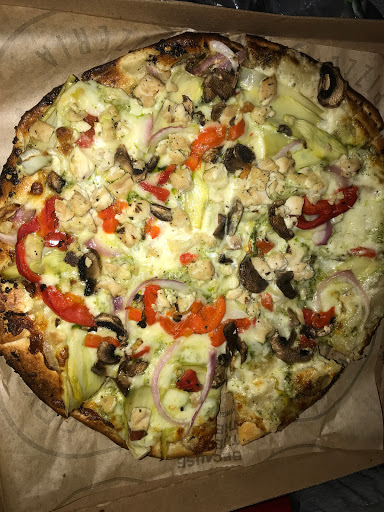 I really love this place. I live just down the street and come over for lunch all the time. They have more cheeses than most places (less common ones like ricotta, feta, and blue) and even a dairy-free option. All kinds of sauces, a bunch of toppings. You could really go nuts if you wanted to. The pizzas themselves are thin crust, which I like. They cook fast and come out crispy. A pizza and a soda costs around $11, which I think is fair. The pizza isnt huge, but its definitely enough for one person and I usually even end up saving some for later. All in all, I definitely recommend this place for some yummy, unique pizza.