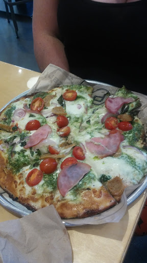 7/14/14 This girl loves her veggies. I also love pizza, so, naturally, my favorite pizza has lots and lots of veggies on it. My least favorite type of pizza is the "two topping" or "three topping" version - how do I decide what topping I want? I generally veer toward veggie specials when theyre offered, wishing the price didnt go up with each topping on a custom slice. Oh, happy day when I walked into Pieology Pizzeria. Our first visit to Pieology was today and a happy day it is. My husband and I were finally at the front of line and had two crusts flattened out for us in an awesome pizza pressing machine. The manager was wonderful as he told me about the options: my husband put herb butter sauce and two types of cheese on his pie, I picked red sauce for mine (they also add a little olive oil to keep the crust from burning). I had mozzarella and gorgonzola on top of the sauce. Then, the veggie station. Casey skipped this step and layered on the meat. I, however, tried to picture a pizza with all the veggie choices they offered. In my mind, it was crazy talk, so I picked three or four favorites. Or maybe it was five but whos counting?! Not the nice girl on the veggie station; she was happy to put on as many as I wanted. She properly placed my mushroom, olive, artichoke, jalapeno, and garlic choices. And by "properly", I mean that they were evenly spread about the pizza. Our slices were cooked "well done" at our request and were still out in a handful of minutes, being delivered to our table by another friendly face. They only had a staff of four out front - and the food and service was excellent. Hot, fresh, fast, tasty. Everything you want in thin crust pizza. I had mine finished with a pesto sauce and hubbys was drizzled in ranch. Thats the beauty of this place. Its totally customizable - and they have something for everyone. Less than $10 each and the pizza was big enough to take (a little) home. Cant beat that price! Even sodas were only $1.75, and that seems low. I will be back for more tasty pizza. I cant count the times Ive complained that "all the good pizza is on the other side of the tunnel", and even last week someone asked me for a pizzeria recommendation, and I said "Oakland". This is my new favorite local pizza for sure.