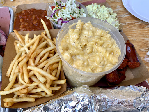 The bbq is excellent. The ribs melt in your mouth. The tri-tip crumbles under your fork. The brisket is moist and juicy. The links are medium spicy and full of flavor. The chicken is moist and not overly smokey. The cole slaw is delicious! The german potato salad is spectacular. They have a great selection of beers. My gf and I love this place! It is also reasonably priced and in a nice quiet location. The ONLY complaint I could come up with is the limited seating....but that is just a testament to their popularity.