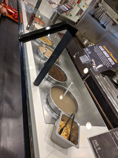 Great for vegetarians and vegan although there are a couple of items with meat; the chili soup and bacon bits. For the meat lovers, youre probably wondering how this can possibly fill you up and it did. But, at $15.99 plus another $2.59 for a drink, it comes down to paying $20.00 for soup and salad. This place is not bad, in fact its quite good. The salad line has great varieties and its nice and ice cold. Their bread selection was fresh and tasty. Being April Lemon month they had lemon corn bread and lemon lava cake. They even have lemon soft serve ice cream. But I gave this place a three stars is because some of their other items are out and ten minutes later, it was still out. For example, their Corn Chowder was almost out and what was left was pretty dried up and sat that way for quite some time. They were constantly out of soup cups and soup spoons too. Their fresh fruit was not existent and quite disappointing with sad looking cut oranges and loose grapes. I think if they put as much effort as they did with the salad bar, this would be a great healthy option.