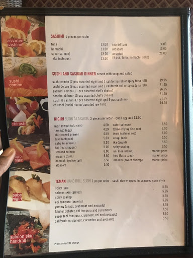 The whole staff is very kind and welcoming ping the owner and her husband are great ! The freshest sushi in town. Never been disappointed, baked muscles are the bomb and everything else on the menu! Must try if you like authentic sushi