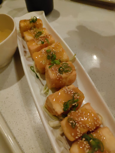 So good.. And so convenient. One of my favorite sushi places hands down. The staff was super friendly when we walked in & all greeted us with hellos. Sushi was beyond good! Me and my friends literally killed 3 rolls in a matter of 6 minutes. I cant put into words how good the sushi was. Youre just going to have to try it for yourself! Lacking only one star because on the menu they had this green tea mousse that she As trying to get, and apparently they didnt have it..