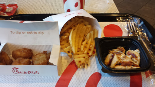 Chick Fil A is just fantastic chicken. I like this location because its brand new, clean and the staff is friendly there. The food at chick fil a is pretty bomb, can be a bit greasy, but make sure you get the fries with your meal. The only complaint I have about this location is that anytime I order through the drive thru, they ask me for what sauce you want. They always forget to give it to me unless I ask again at the window when I get my food. Other than that, highly recommend checking out chick fil a if you have not yet!
