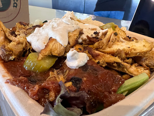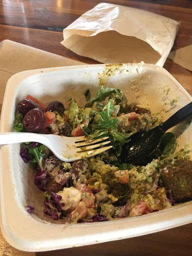 Love the simple menu. It makes for quick choices. The service is quick. You let them know what you want, and they walk you down the service line and make your pita or bowl the way you like. Their take out packaging for pitas is amazing. It is a small cardboard box that has a zip strip. This lets you take off the top and still have support for holding it. I will definitely be back.