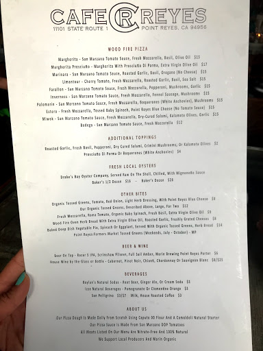 I would recommend Cafe Reyes without hesitation. The atmosphere is very cozy and laid back and the food was phenomenal. We had the house salad and it was delicious. The dressing was flavorful but not overpowering, and the bleu cheese crumbles were the perfect complement. We also ordered the plain pizza with sauce & cheese (the Bogota?). We ordered pepperoni on it and also ordered the Inverness, which had sausage and mushrooms. Both were excellent choices, though you really cant beat the spicy kick of the pepperoni. To top it off, the owner started making the pizzas about halfway through our meal and our table was right in front of the service counter. Friendliest, most hospitable guy ever! We chatted easily the remainder of our meal, he gave us some of their complimentary cookies (which my kids exclaimed were the best cookies theyd ever had!) AND brought over a ginormous hunk of their apple pie. Amazing customer service. We will definitely come back if were in the area again. Mr. Owner, if you read this, your guests from Orange County tonight appreciated you and your generosity! Thanks for a memorable evening!