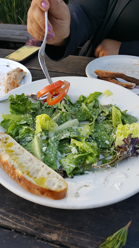 I was hungry the night I came here after hiking through Pt. Reyes. Thinking that a personal pizza might not be enough, I considered adding a soup or salad. Luckily, I didnt because my pizza was plenty big enough for me on this night when I hadnt eaten anything in more than 10 hours. The toppings were very flavorful and tasty and I liked the consistency of the dough (not to spongy, but not burnt.) The service left something to be desired. Considering that there were four tables occupied and it took people coming up to the counter with their glass in hand to ask for a refill of iced tea, but I had no complaints myself. The interior of the restaurant is comfortable and felt warm on a cool night. Although I think that prices for drinks are on the high side and the service was a bit slow, the quality of the pizza is what will draw me back for another visit.