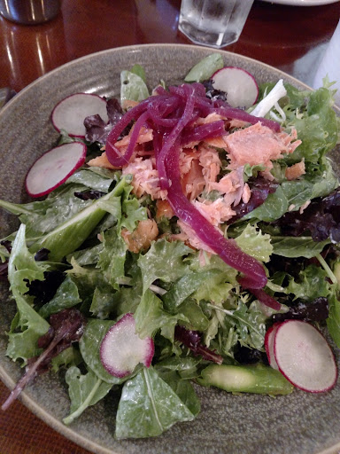 We just had a light dinner here. We tried the Prince Edward Island Mussel in a Tequila Cream and the Cobb Salat - both very well done. I also had the Watermelon Margarita - yummie. And we went back the next day for more ;o). For lunch we tried the Fish & chips, with Lagunitas IPA beer batter, hand-cut fires & amazing coleslaw and the Hangtown fry Drakes oysters fried with bacon cooked with three eggs and for dinner Fettuccine with Tomales Bay mussels and clams and tomato, garlic & white and their outstanding Bread Pudding. All absolute winners!