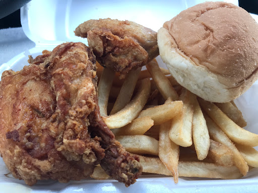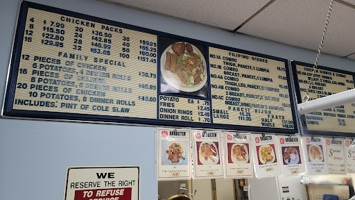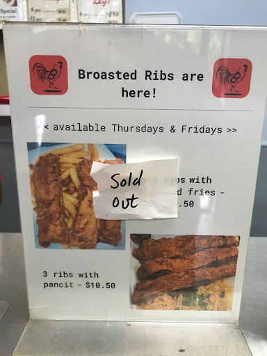 No breading deep fried chicken. ...... Say What!?! Awesomeness packed into delicious Filipino style chicken. They offer rice, shanghai rolls and Pepsi products! HERES THE 411 YOU NEED AT LEAST ONE HOUR TO EAT HERE, THE CHICKEN IS COOKED TO ORDER!
