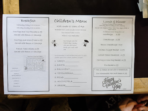 This place is great if you want a quirky, rustic atmosphere and yummy milk shakes. Family oriented, with a friendly staff. The hamburgers however are nothing special. The food knocks this place down from the 4 stars I wanted to give it. But Ive heard the breakfast is definitely good, so I might try it again.