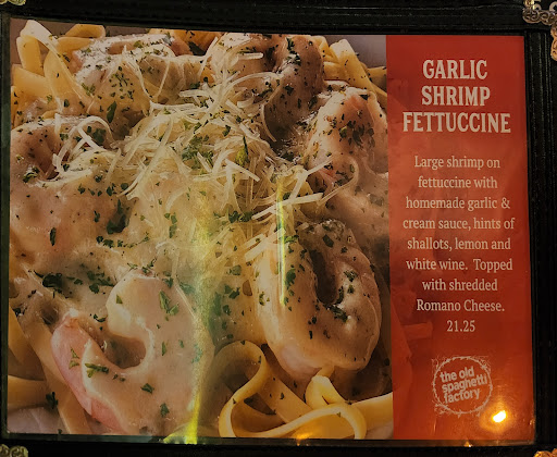 Not one to complain, but so disappointed in my experience last night I feel like it warrants a review in hopes of making the restaurant better. Ive been to many Old Spaghetti Factorys before- primarily down in Southern California- and this was my only negative experience. We went here in hopes of a lovely night out since my boyfriend just returned from overseas and was craving some fettuccine Alfredo as his first meal:) (who wouldnt?!). Ordered a bottle of wine- which took a while to come out because they could not find the bottles... No big deal at the time... But when the wine finally came out, the girl who opened the wine set it down on the table to uncork it, uncorked it with a struggle, dropped the cork on the table and walked away. Needless to say my boyfriend and I stared at each other stunned- never have we EVER experienced someone not pour our first glasses. Ive worked as a restaurant manager before and this is Serving 101. But again, no biggie... We didnt complain or let it ruin our evening... And let it go at the time. Salads... I ordered a Caesar and my boyfriend ordered Blue cheese dressing. The dressings tasted very much the same- not like Caesar or blue cheese- but more like a tangy house. The blue cheese had crumbles in it... But besides that you wouldve never known what it was. It was a mayonnaise-based vinegraitte. Also the dressing on both drowned the lettuce and made the iceberg lettuce soggy and inedible. Entree... My boyfriend ordered the chicken fettuccine Alfredo. It was the most bland thing Ive ever tasted. Even drowning it in Parmesan, salt and pepper didnt mask the blandness of the white sauce- tasted like flour and water. I felt so bad- this was supposed to be his big night out and it was such a disappointment. One positive- I ordered the Italian sausage with meat sauce- though presentation was lacking, it tasted good and I gobbled it up. Dessert... We were in the middle of our desserts with full glasses of wine when our server dropped the check. This kind of made our eyes roll and was the final straw of evening. We felt like we were being pushed out and decided to not even finish the wine and leave. Overall- extremely disappointed. Not worth the money. Hopefully you guys train your servers better- or at least teach them basics in serving etiquette. Let me know if you need my help. Final course