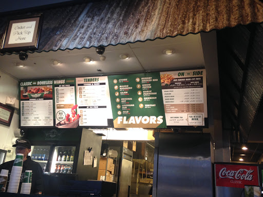 Good food, and the $0.60 boneless wings on Monday and Tuesday are downright addictive. They recognize and greet repeat customers by name and are very friendly. Great for take-out, but the dining area feels very cramped, and I have yet to see the bathroom ever be clean. Dont recommend getting drinks unless youre staying, as theyre relatively expensive. Beware: The atomic wings are hotter than you expect! Mango habanero is the perfect blend of heat and sweet.