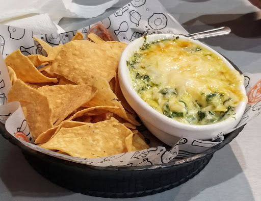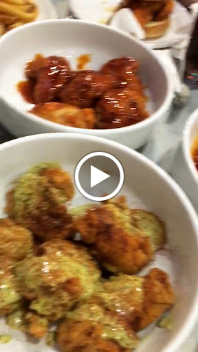 Came in after lunch on a Tuesday, was not busy. Great staff, excellent selection of sauces to go with the bone in/bone out wings and chicken tenders. Has a bar with a nice selection of alcoholic drinks, although a limited selection of soda. Nice place to beat the heat.