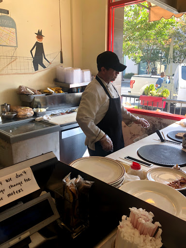 Stopped by mid morning on May 1 while on vacation with my dear girlfriend. Crepes are abundant in the SoCal area, so our trip wouldnt be complete without a stop at a creperie. This location of CdP offers wonderful food that tastes great and is presented beautifully. Staff were attentive and courteous. My sweetheart and I ordered the strawberry/nutella crepe and the Normandie (apple cinnamon caramel) crepe, along with two cappuccinos. The cappuccinos were delicious and decorated with coffee art that combined the foamed milk and raspberry syrup. The crepes were delicate/tender and perfectly cooked with abundant fillings of fruit and nutella or caramel (neither was too sweet). Chantilly cream served alongside the crepes thoroughly rounded out the crepes. Just delicious.