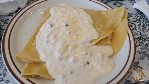 Sooo Good. I ordered the Crepe with chicken, mushrooms, cheese with garlic cream sauce.