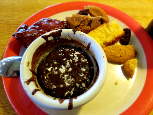 Why do I think it used to be better. Previously I would frequent this location but do not seem to be doing so as of late. While its gotten better not cleanest but what do you expect fighting someone over that last slice of whatever. Prices went up quite some time ago disguised with a separate drink purchase. I guess thats good for people who dont want them though. Food is usually bland and you can get your fill. Ice cream area always seems to be a disaster. Restrooms sometimes make you think youre better off not. Cashiers usually friendly, those on the floor, not always. Still good destination if you dont know what to eat and want to get your fill. Ive always gotten a warning that they are going to be cleaning up and never seemed rushed out the door which is good too.